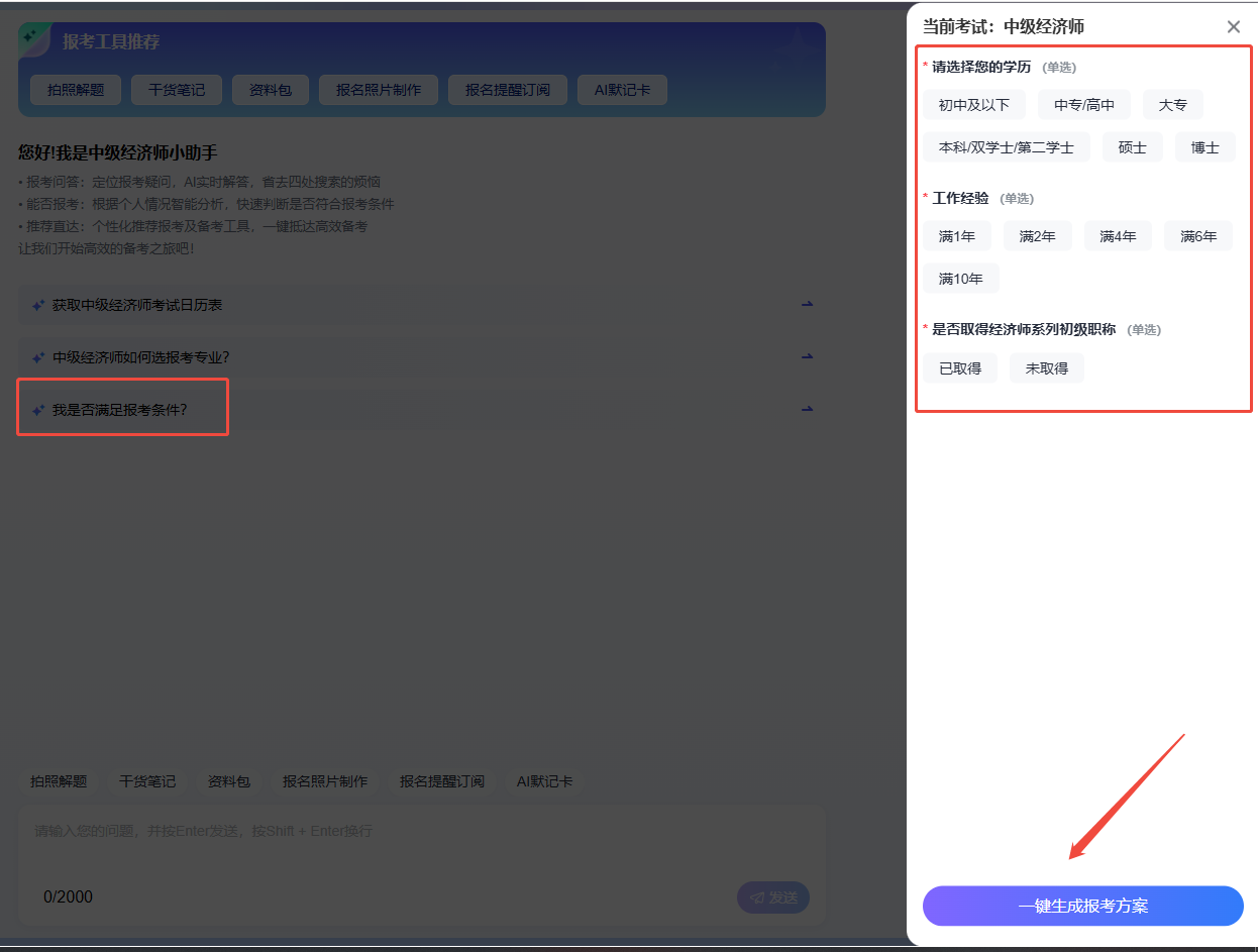 一款专为中级经济师考试打造的AI智能报考助手重磅上线,三大核心功能击破报考痛点,打破信息差,让报考与备考全程高效顺畅,助力考生专注复习、告别内耗!
