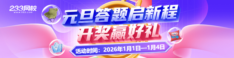 为了感谢大家一直以来的信任和陪伴,也想帮大家在2026年把知识学扎实、备考更高效,233网校元旦答题开奖启动!用有趣的答题方式巩固考点,还能抱走丰厚备考福利,新一年的学习好彩头这不就来了~
