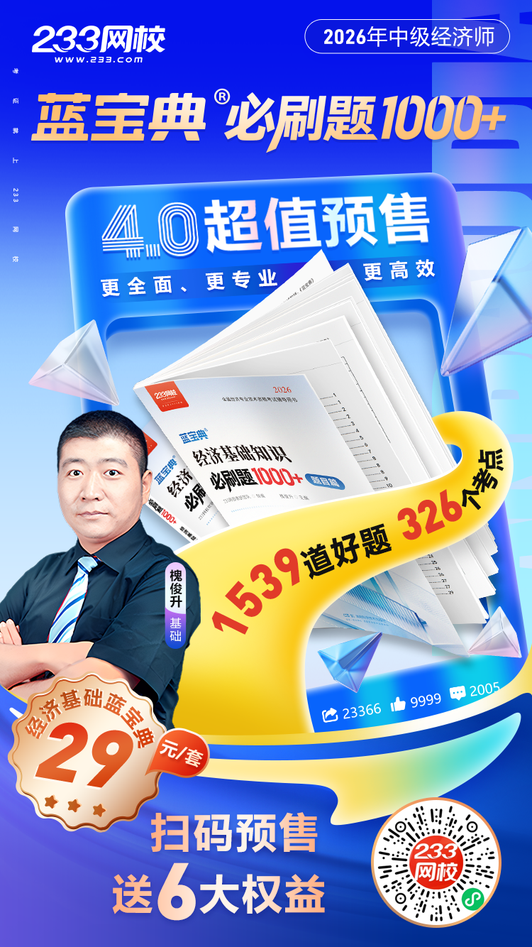 233网校中级经济基础《必刷题 1000+》来了!2026新版预售开启,不仅有 1000 + 超经典习题,还送课送权益,搭配专属刷题方法,帮你把 “盲刷” 变 “精刷”,轻松啃下中级经济基础这块硬骨头!