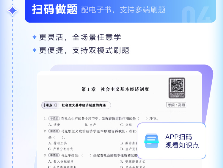 书本习题支持APP 扫码做题,电子书同步解锁,通勤、居家都能刷,碎片时间不浪费;