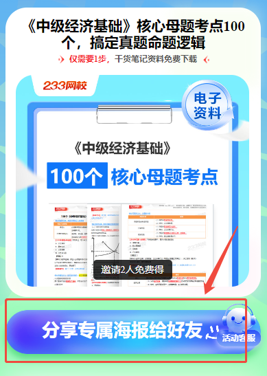 通过活动页面,邀请2位好友添加经济师学霸君企业微信,即可在活动页面自行下载PDF版本。整个过程轻松便捷,不用耗费大量时间和精力,轻松几步就能免费获取中级经济基础核心母题考点100个。