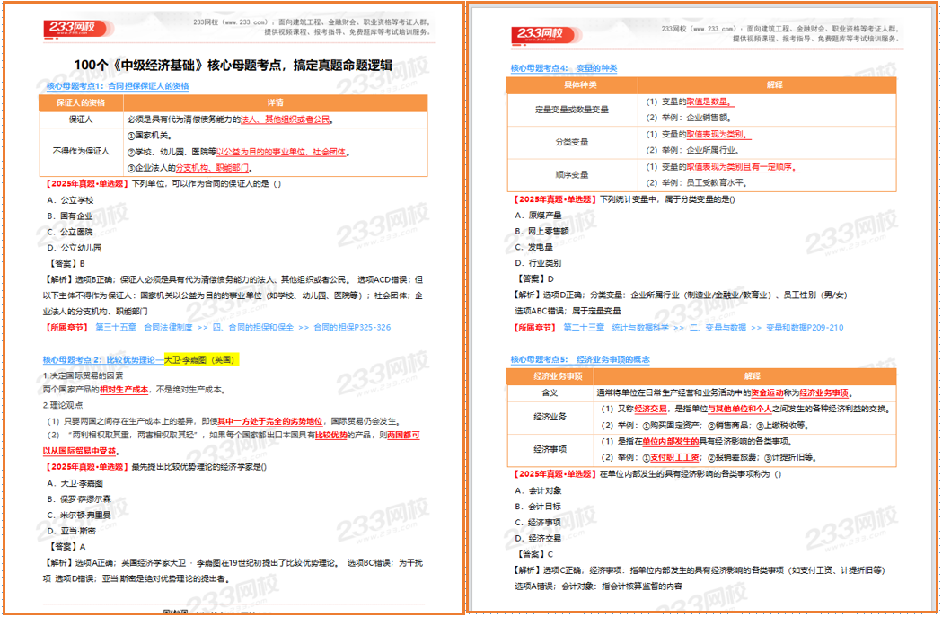 《中级经济基础》100个核心母题考点资料部分展示↓↓
