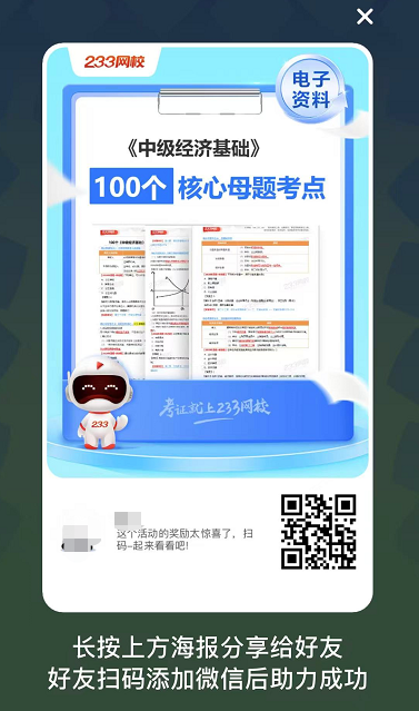 最后:朋友识别你分享的“专属海报”上的二维码,加233网校经济师学霸君为好友,成功邀请对应人数( 邀请2人),即可下载【注意,删除就会失效哦】。