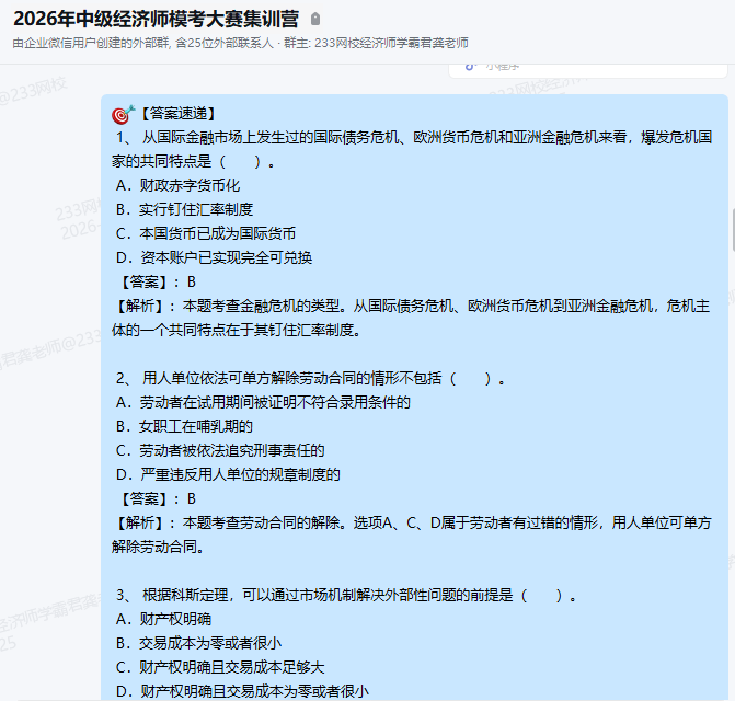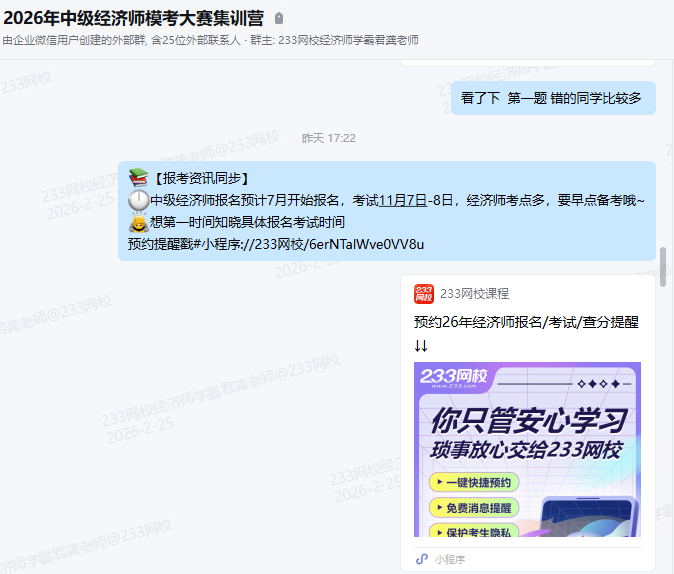 新的一年,是时候开启备考模式啦~2026年中级经济师模考试题带刷中,进入微信群可享试题带刷。早准备,早通关,马年上岸不费力!