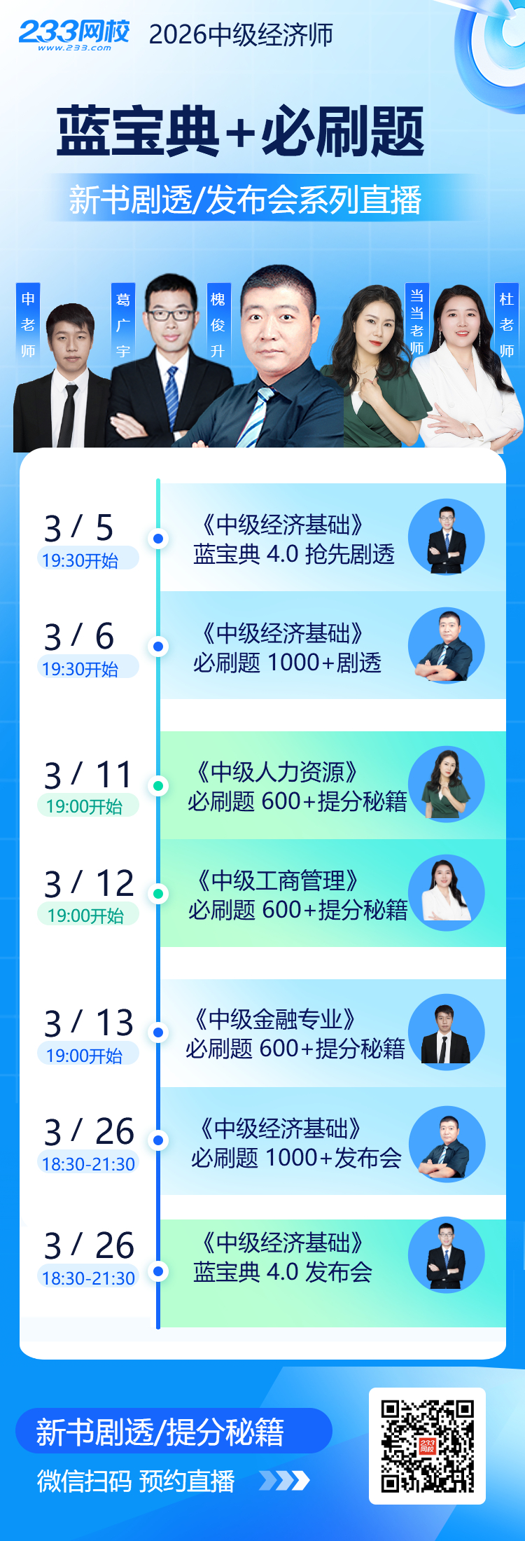 3 月 6 日 19:30:槐俊升老师主讲《中级经济基础必刷题1000+》