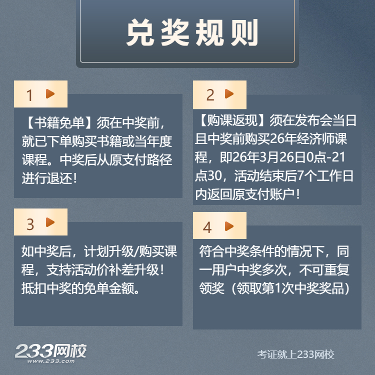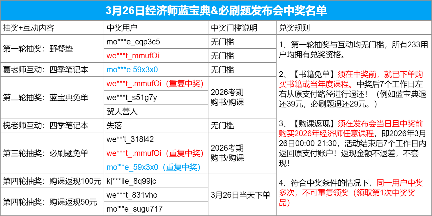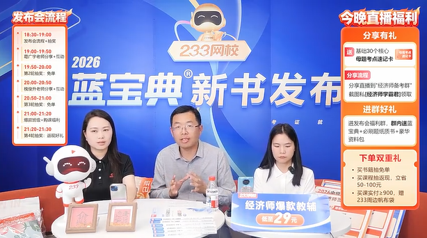 在各位中级经济师同学的热情打call、在线蹲守下,233网校“2026年中级经济师《蓝宝典/好题精选》新书新课发布会”,已于3月26日圆满收官啦!这场专为经济师备考人量身打造的干货盛宴,既有考点拆解、教辅揭秘,还有宠粉抽奖嗨不停,全程高能、全程过瘾。