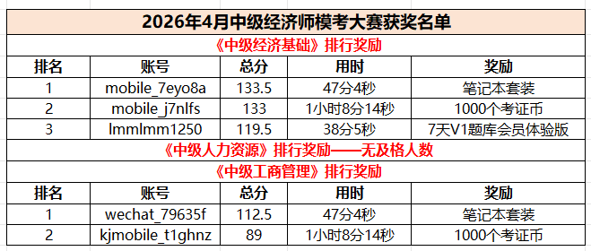 2026年4月中级经济师模考大赛已于4月27日结束,本次模考大赛榜首最高分133.5分。