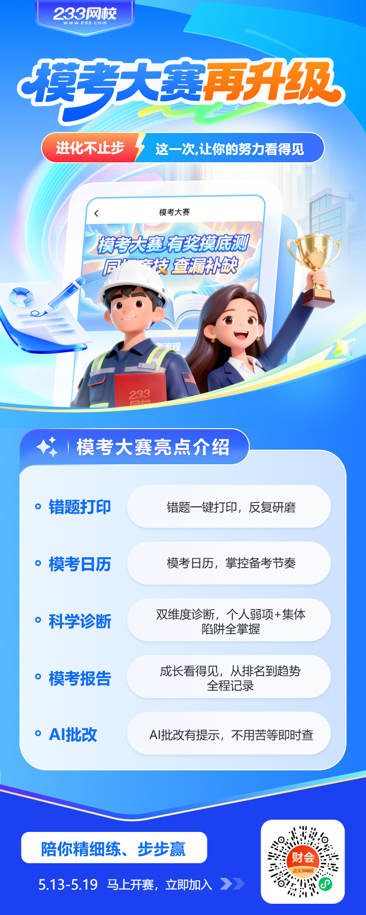 233网校每个月都会进行模考大赛,适合不同进度考生备考刷题巩固提分,4月模考大赛4月20日开始。