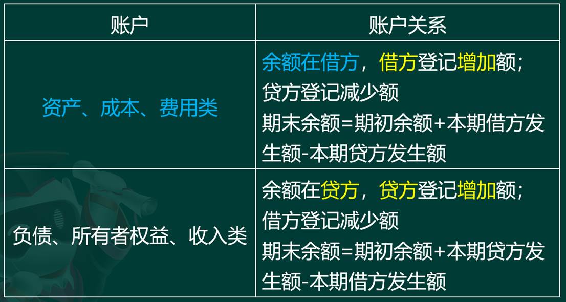 (2)余额按时间不同分为期初余额和期末余额,基本关系为:期末余额=期初余额+本期增加发生额-本期减少发生额。