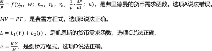 现金余额数量说的货币需求是以人们的手持现金来表示的,不仅是作为交易媒介的货币,也包括贮藏货币,这是剑桥方程式区别于交易方程式的关键所在,等式中K就集中反映了这一思想。选项E错误。