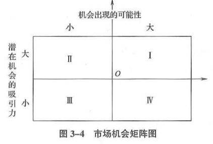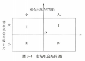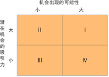 市场机会矩阵图(从两个方面分析:潜在机会的吸引力、机会出现的可能性)