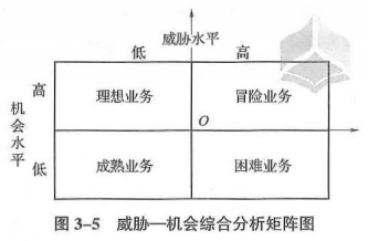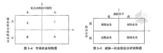 其中:冒险业务,即高机会和高威胁的业务。在此条件下,机会与危险同在,利益与风险并存,企业应当进行全面分析,慎重抉择,争取利益。