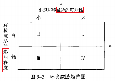 环境威胁矩阵图(从两个方面分析:潜在环境威胁的影响程度、出现环境威胁的可能性)