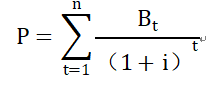 其中P为技术商品的评估价格;Bt为第t年被评估技术所产生的经济效益;i为折现率;n为被评估技术的寿命。