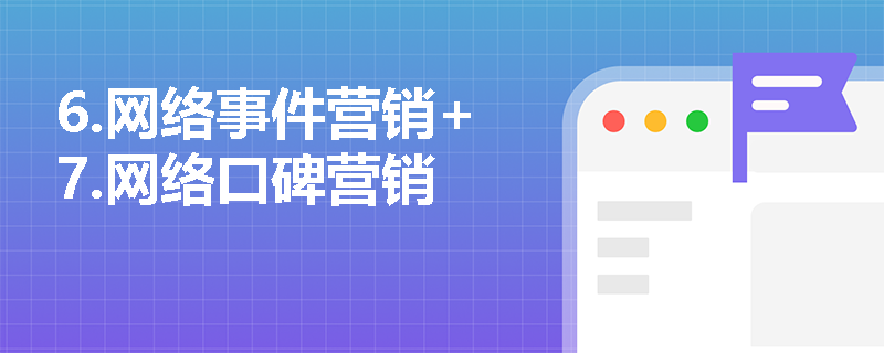 (七)网络事件营销:企业、组织主要以网络为传播平台,通过精心策划、实施可以让公众直接参与并享受乐趣的事件,并通过这样的事件达到吸引或转移公众注意力,改善、增进与公众的关系,塑造企业、组织良好的形象,以谋求企业的更大效果的营销传播活动