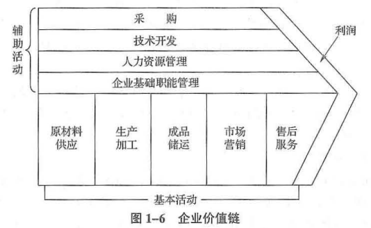 (1)基本活动:企业生产经营的实质性活动,一般分为原料供应、生产加工、成本储运、市场营销和售后服务五种活动。 (2)辅助活动:指用以支持主体活动而且内部之间又相互支持的活动,包括采购、技术开发、人力资源管理和企业基础职能管理。 (基本活动与商品实体加工流转相关,环环相扣,是企业基本的价值增值活动。) |