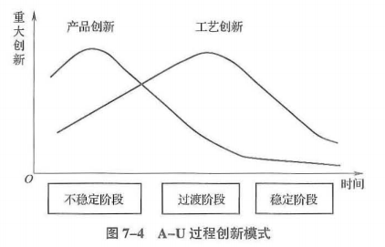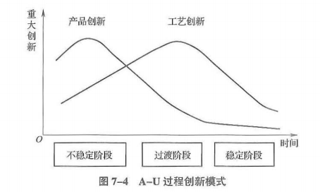 A-U过程创新模式的总体特征表现为:在产业成长的前期阶段,产品创新比工艺创新活跃,创新成果更多;而在产业成长的后期阶段,则是工艺创新较产品创新有更丰富的成果。