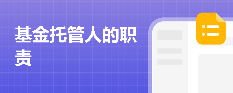 基金托管人的具体职责或业务内容,因各个国家和地区法律法规的不同而存在差异。