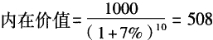 假设某零息债券,期限为 10 年,债券面值为 1000 元,贴现率为 7% ,那么它的内在价值为