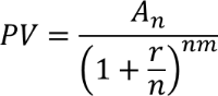 其中,An表示第n年年末的现金流量,r表示年贴现率,m表示年计息次数。