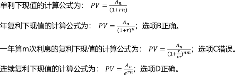 B、C选项,现值(又称在用价值)是指把未来的一笔支付或支付流折算为现在的价值;D属于干扰项。