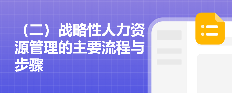 1、主要流程:确定组织战略→确认对员工队伍的需求→制定人力资源战略及其相应的政策和措施→确定详尽的人力资源管理计分卡衡量指标。