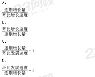 7.环比增长速度时间序列分析中,“增长1%的绝对值”的计算公式为()。