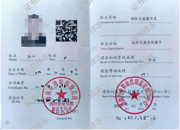 新版消防行业职业资格证书内四、封三式样(五级/初级工、四级/中级工)