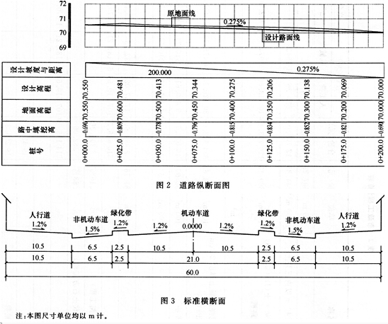 1.计算桩号0+000~0+200段机动车道的挖土方、剩余土外运、石灰粉煤灰土基层、面层、定型钢模板的工程量。