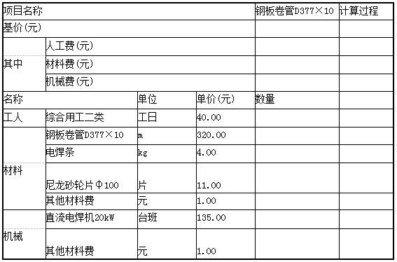 5.其他材料费按钢板卷管、电焊条、尼龙砂轮片材料费之和的0.1%计算;