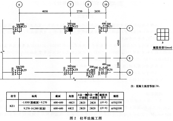 1.KZ1纵筋插至混凝土基础底部,基础底部标高为-2.550m;