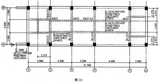 3、根据图1~图10和以下已知条件,按照工料单价法计算标高5.950m梁1m钢筋工程量。