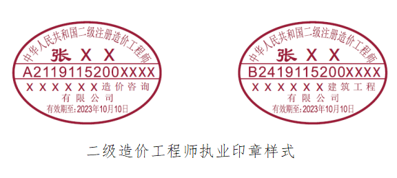 (四)一级造价工程师执业印章的颜色为海蓝色;二级造价工程师执业印章的颜色为枣红色;