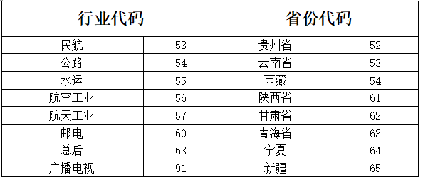 (五)第7、8位为行业管理机构代码,取值见代码表。