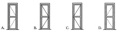 1.下列各选项中的门。( )表示的是外开门,且合页安装在大门左侧。
