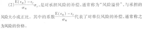 无论是单个证券还是证券组合,均可将其β系数作为风险的合理测定,其 期望收益与由β系数测定的系统风险之间存在线性关系。这个关系在以E (rp)为纵坐标、βp为横坐标的坐标系中代表一条直线,这条直线被称为证券市 场线。