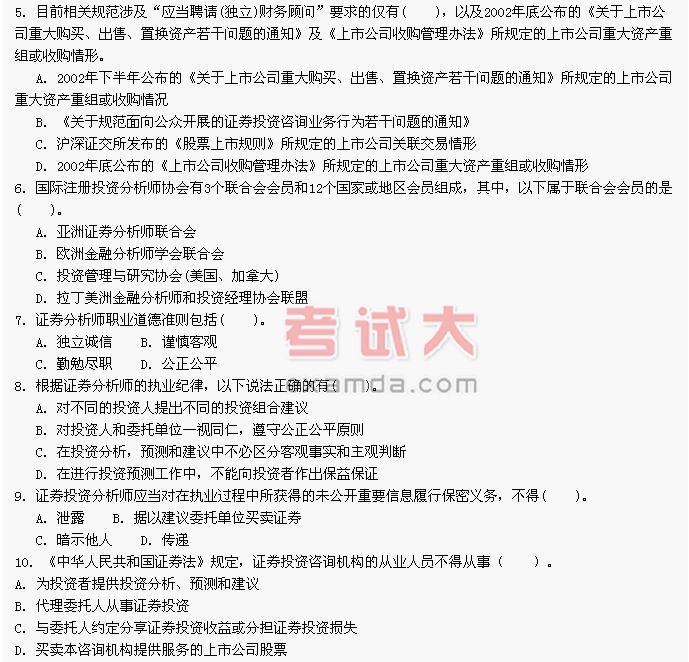 - 2014年证券投资分析习题下载第九章(证券分析师、投资顾问与证券投资咨询业务) 2014-10-07