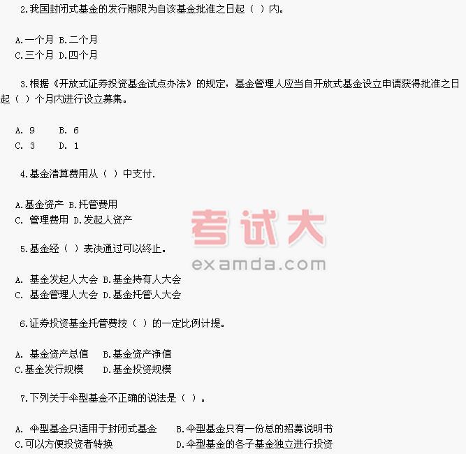 证券资格考试《证券投资基金》单项选择题练习