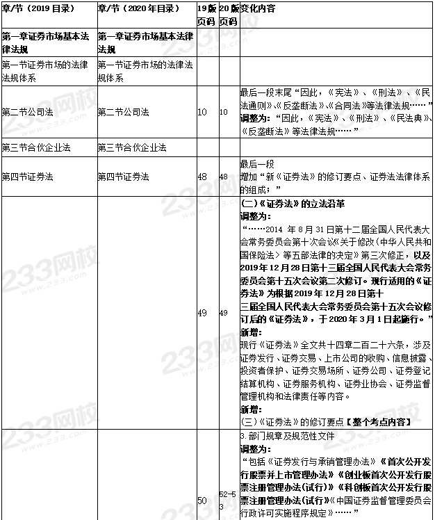 2020版证券从业《证券市场基本法律法规》教材已出版发行,新版考试教材共5章内容。此次大纲变化主要受到新《证券法》实施的影响,变化点以新增内容为主。整体变化较大,特别是第一章第四节的证券法和新增第五章行业文化、职业道德与从业人员行为规范。