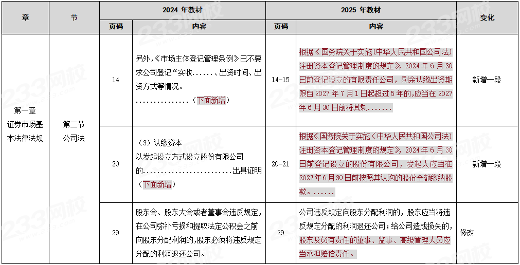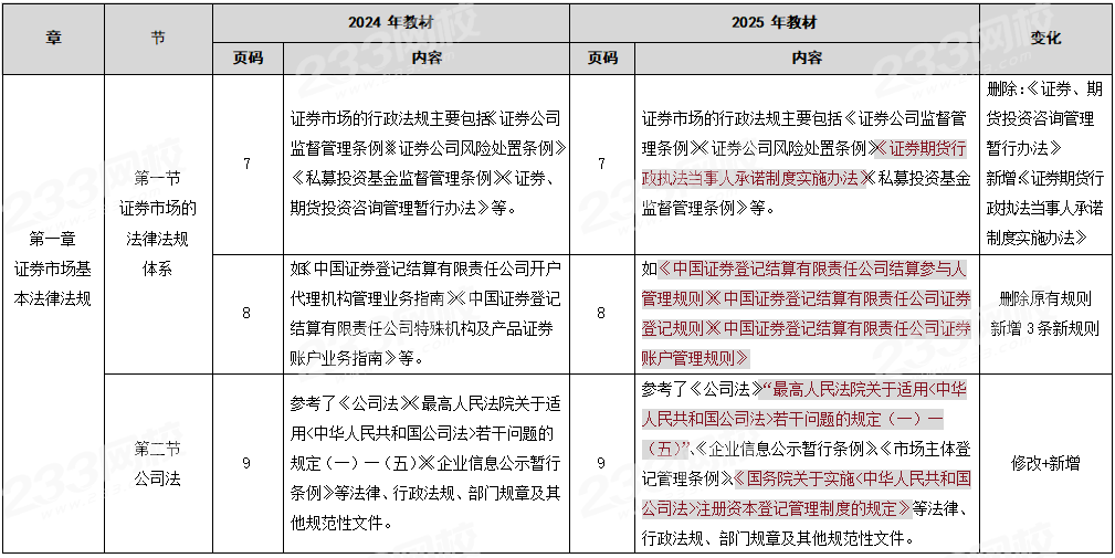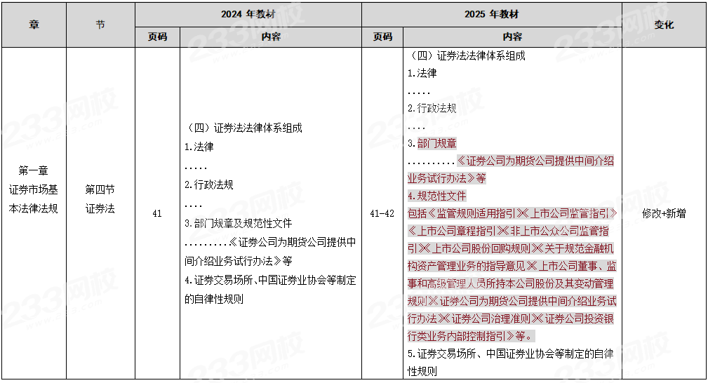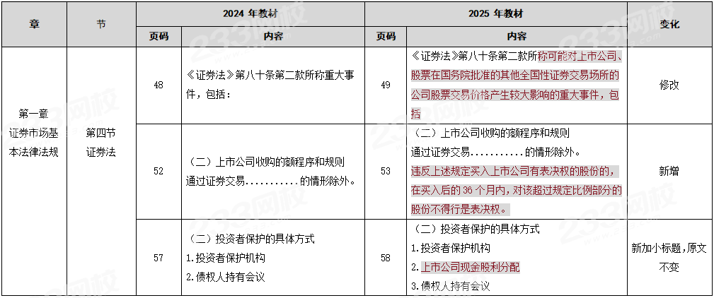 由于页面篇幅有限,更多证券考试教材变化内容请移步233网校APP--我的资料包--2025版新大纲/教材变化 进行下载,也可直接点击下面按钮进入下载。