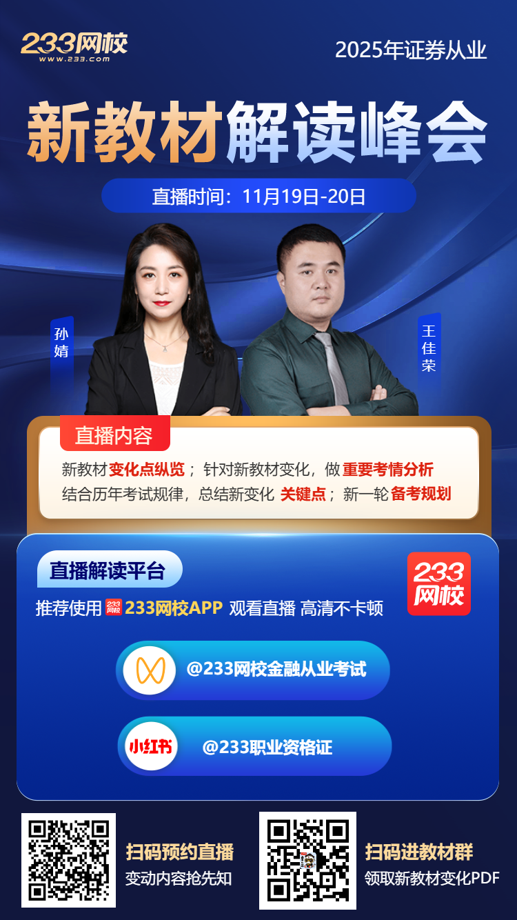233网校王佳荣、孙婧老师对2025版证券从业考试教材进行直播解读,大家可以【点击下图】进入预约,抢先了解教材变化。