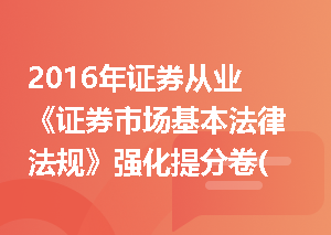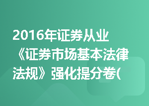 233网校证券从业资格考试题库更新2017年各科试卷了。同时,证券从业VIP题库根据大数据分析各科考点,精准。已购VIP班的学员,可以申请免费开通VIP题库。立即体验>>  2017年证券从业证券市场基本法律法规题量为100题,分为50个普通单选和50个组合型选择题。  证券市场基本法律法规组合型选择题练习题题及答案更新情况如下:  2017证券市场基本法律法规组合型选择题练习(1)  2017证券市场基本法律法规组合型选择题练习(2)  更新中……查看更多>