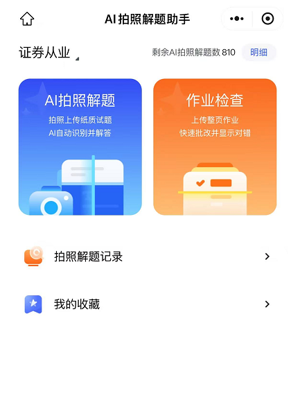 证券考试备考中,“遇到难题卡壳” 是最磨人的事:想查答案却没头绪,想翻教材又耗时间,尤其在职考生本就时间紧张,越卡越焦虑,越焦虑越学不进去,备考节奏全被打乱!如果你也常被 “难题卡壳” 拖慢备考节奏,这款专门为证券考试考生打造的 AI 拍照解题小程序,就是为解决你的 “解题难”而来!