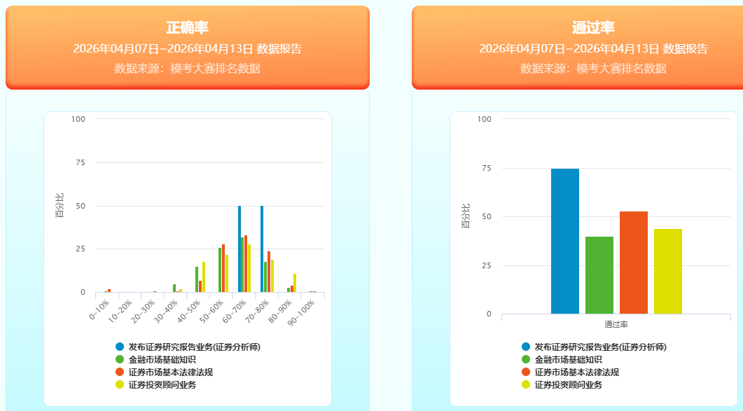 4月证券模考大赛正确率、通过率分析