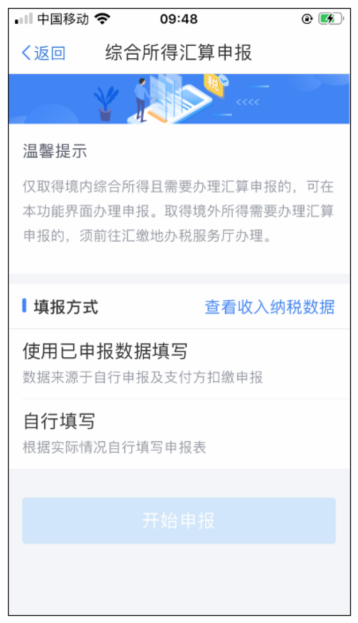 由单位代扣个税的工薪族建议选“使用已申报数据填写”,这样不必再一一填写各项涉税信息;2019年换过工作、当年入职或自由职业者,则要选“自行填写”方式,逐项填报各项收入和扣除。